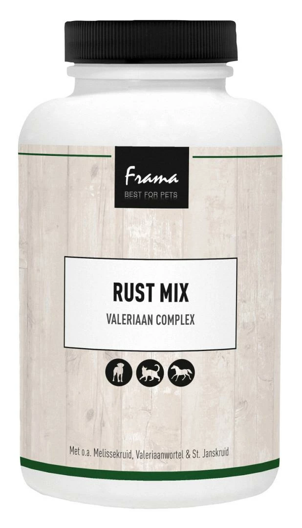 Frama Best For Pets Rustmix (Valeriaan Complex) is een hoogwaardige kwaliteit kruidenmix met een zeer complexe en elkaar ondersteunende werking. Door de fijne maling wordt het product goed en snel opgenomen. Het is een 100% puur en natuurlijk product van hoge kwaliteit.