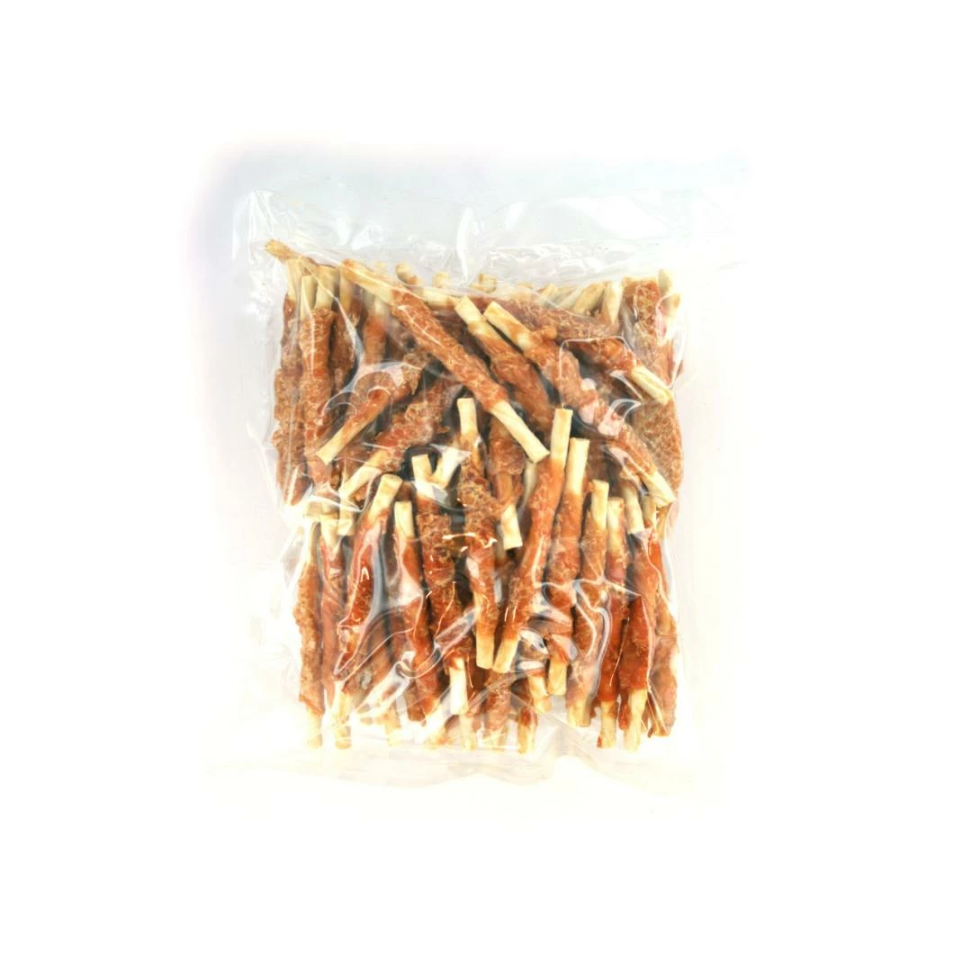 Gedraaide kauwstaaf omwikkeld met kipfilet. Glutenvrij.