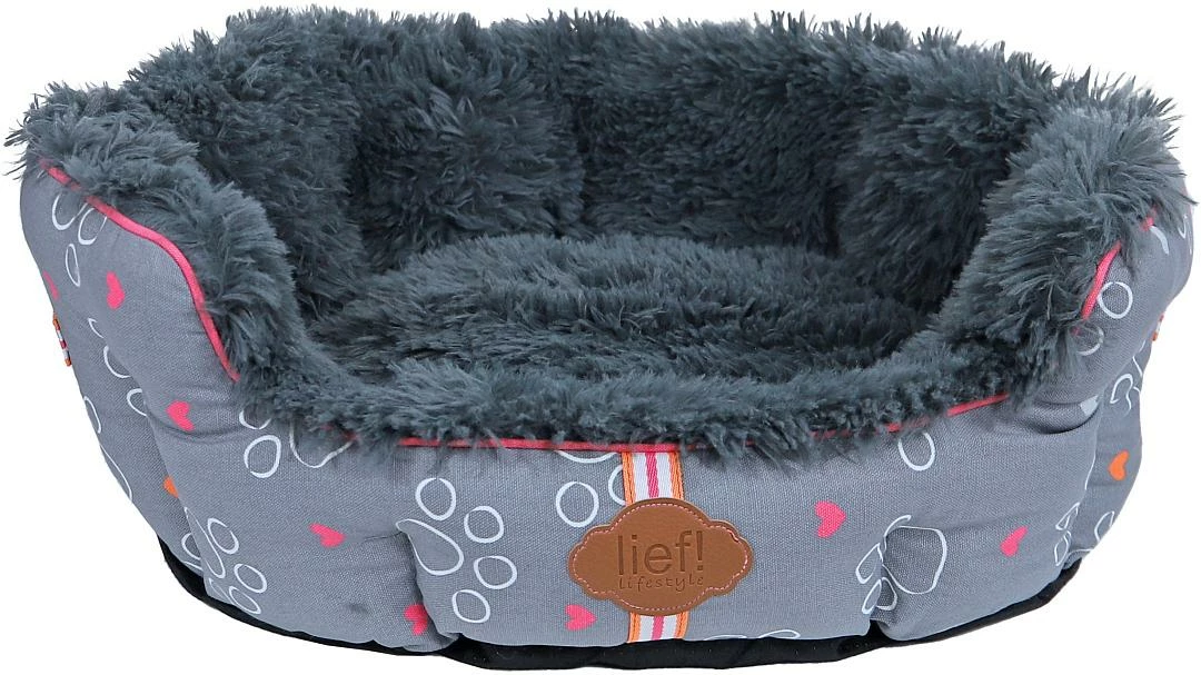 lief! lifestyle Girls hondenmand is een leuke huisdierenmand, met een lekkere zachte binnenkant van antracietkleurig pluche. De buitenkant van de slaapmand is gemaakt van grijze stof met een pootjes print en Girls details. Hier zal jouw huisdier heerlijk in kunnen slapen!