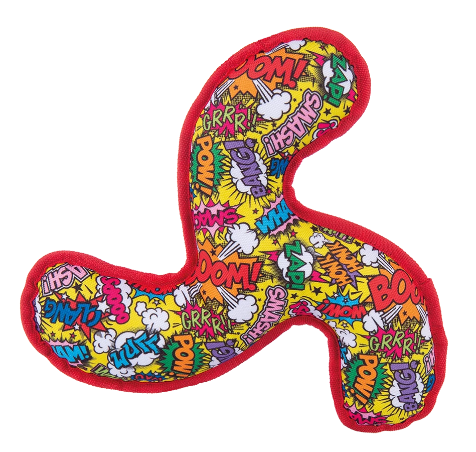 Deze Petlando Boomerang Happiness Comic is een vrolijk en stevig speeltje voor de hond. De boomerang heeft dubbelgestikte naden en is waterdicht. Met de boomerang kun je genieten van een heerlijk interactief spel samen met je trouwe viervoeter.