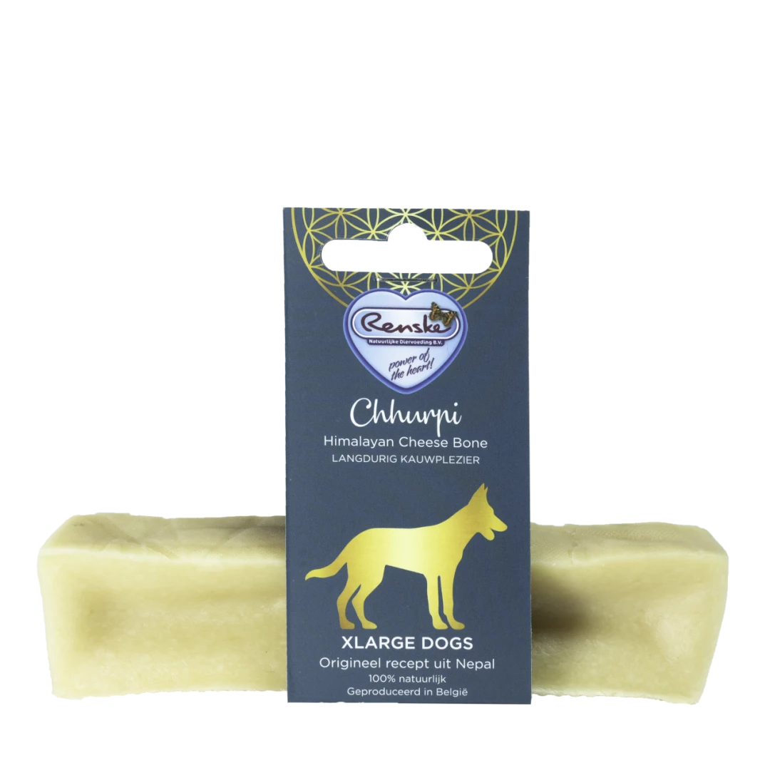 De Renske Chhurpi kauwkluif is een natuurlijke hondensnack gebaseerd op een eeuwenoud recept uit de Himalaya. Handgemaakt op basis van een traditionele methode, is deze kauwsnack een echte verwennerij! Een gezonde snack met een onweerstaanbare smaak!